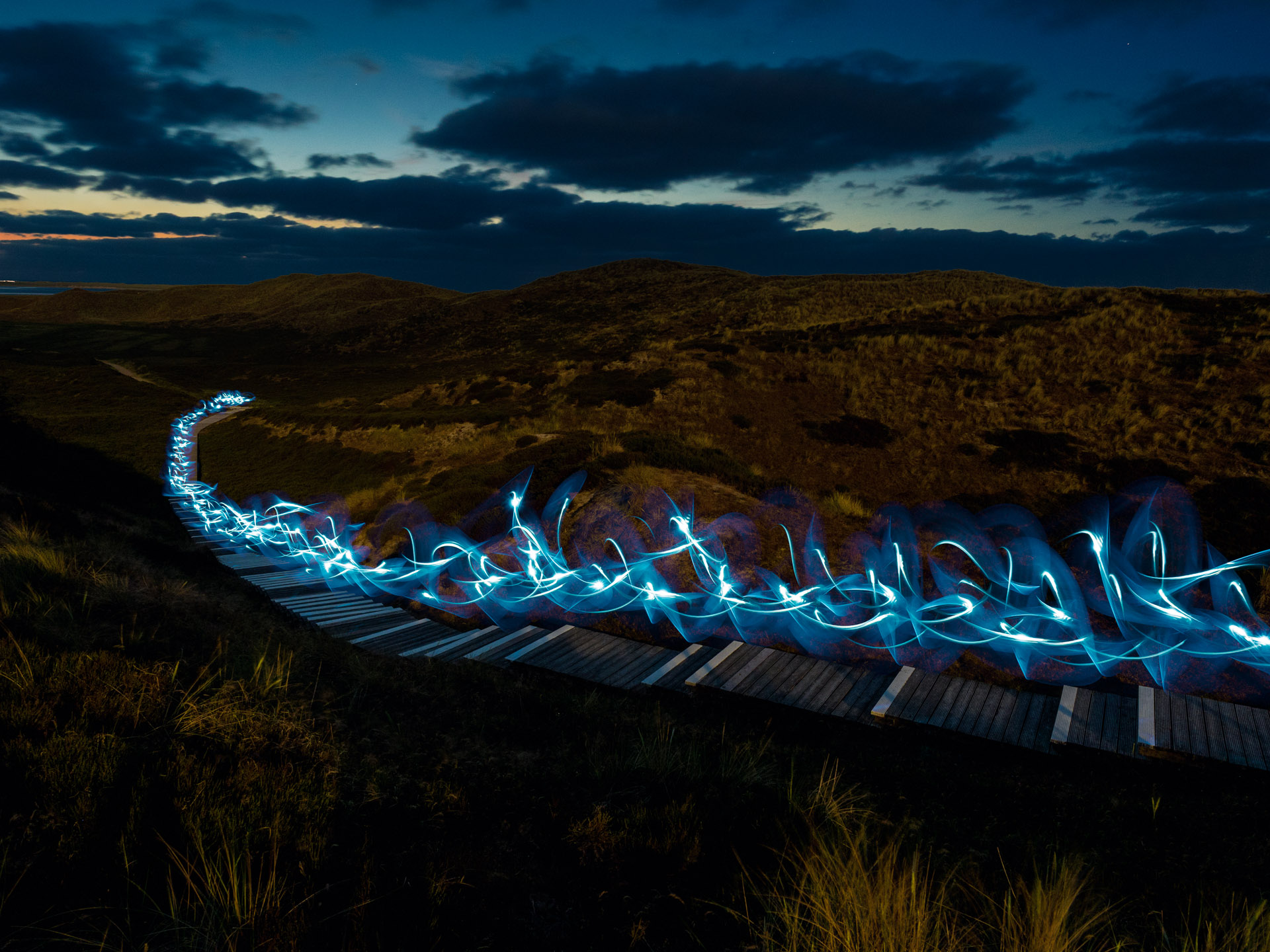 Der international bekannte und mehrfach ausgezeichnete Lightpainter Bernhard Rauscher, alias Lumenman, hat im Rahmen seiner „Lights on Tour“ ,Station auf Sylt gemacht und eine kleine, exklusive und streng limitierte Sylt Serie geschaffen.